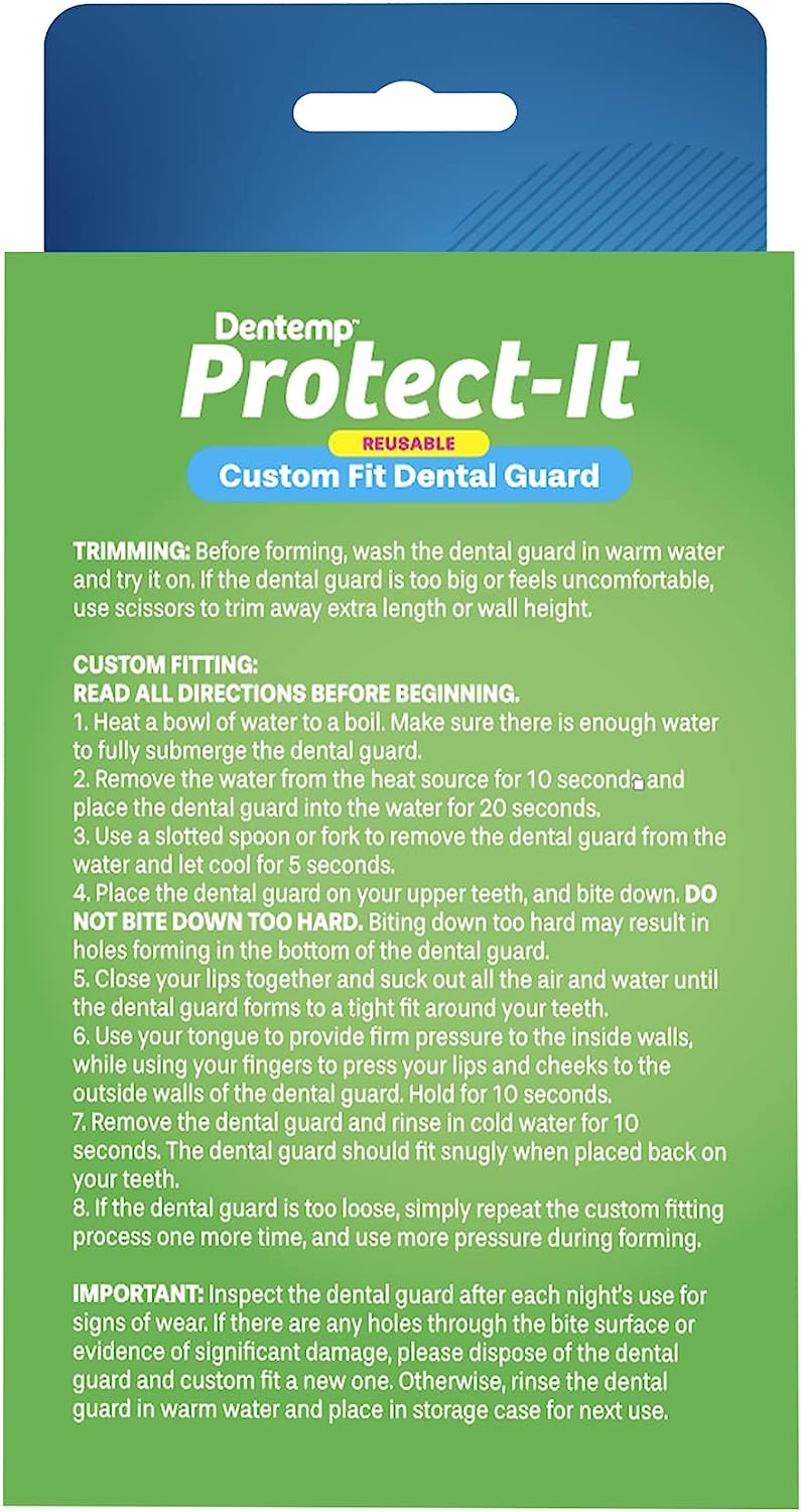 we know not all teeth grinders are the same and know a clunky one-size fits all isn't the way to go. With Dentemp's Protect-it mouth guards you can create a custom fit guard with easy to follow steps. Just boil it, bite it, and wear it!