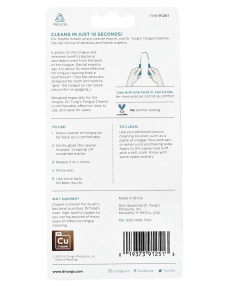 Used and recommended by dentists and hygienists. DrTung's tongue cleaner is the leading tongue cleaner in the health industry and is sold in health stores and dental offices around the country. This new copper version is only available online.