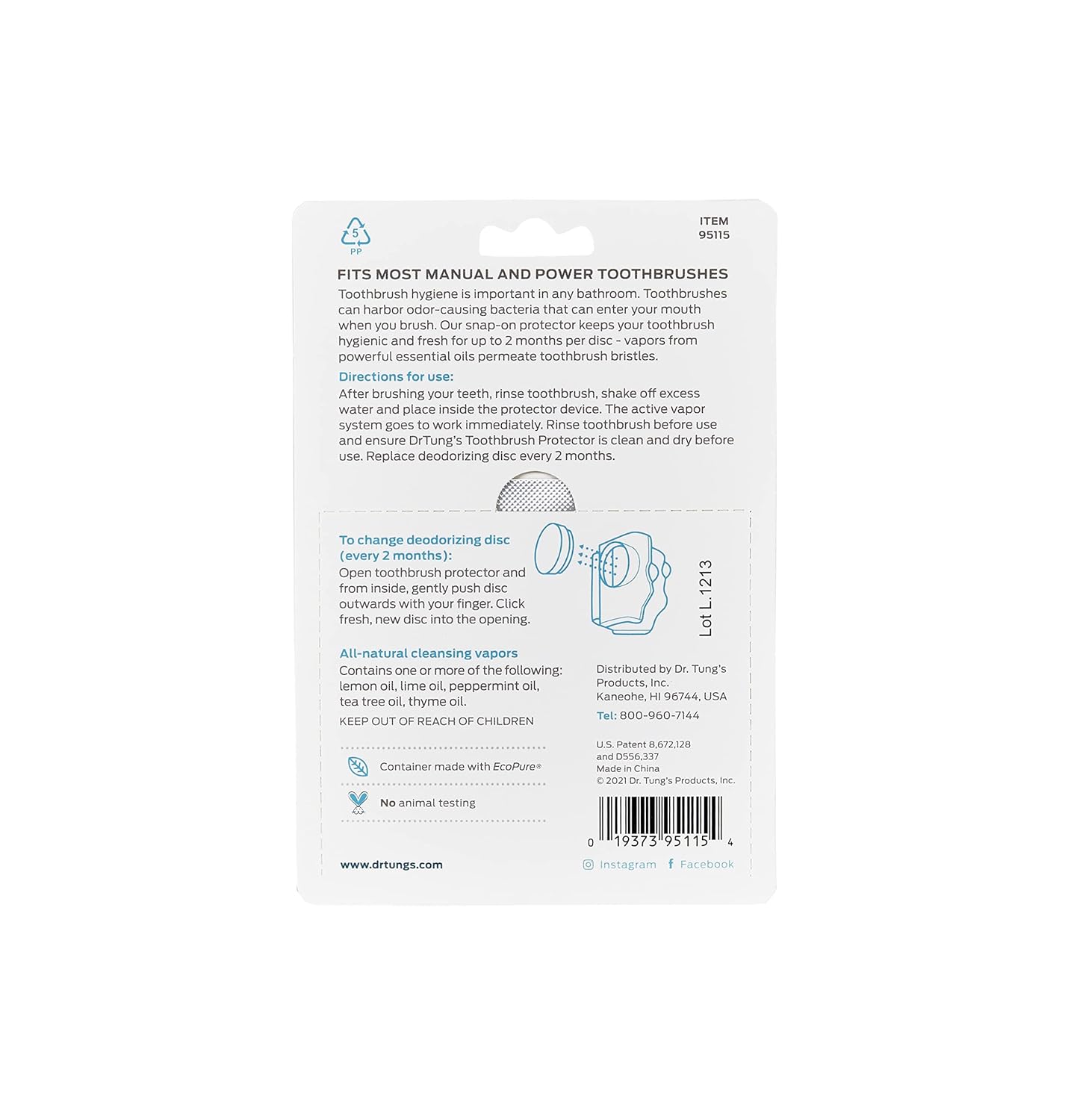 Revolutionary Snap-On Toothbrush Protector with anti-bacterial discs. Keeps your toothbrush hygienic and fresh for up to 2 months per disc - active vapors from powerful essential oils permeate toothbrush bristles.