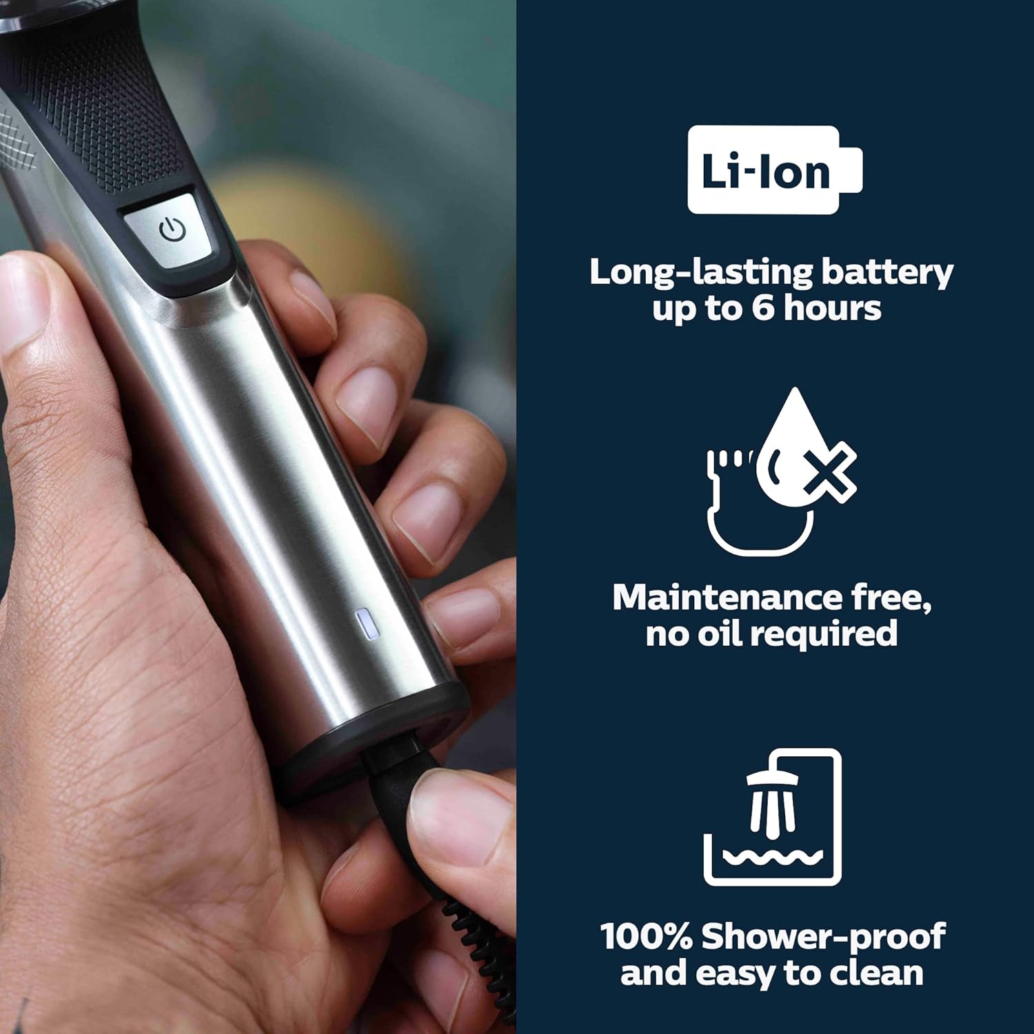 - Smart trimmer technology adjusts power based on beard density